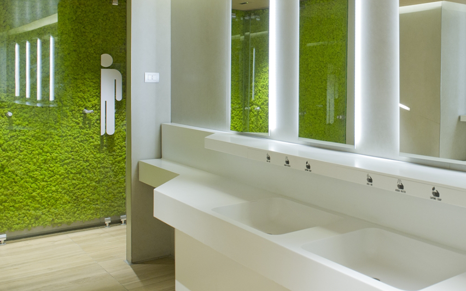 VerdeProfilo®, in collaborazione con Sistema Ufficio SRL di Roma, ha realizzato per ADR – Aeroporti di Roma due pareti MOSSwall® nella colorazione Wasabi55.