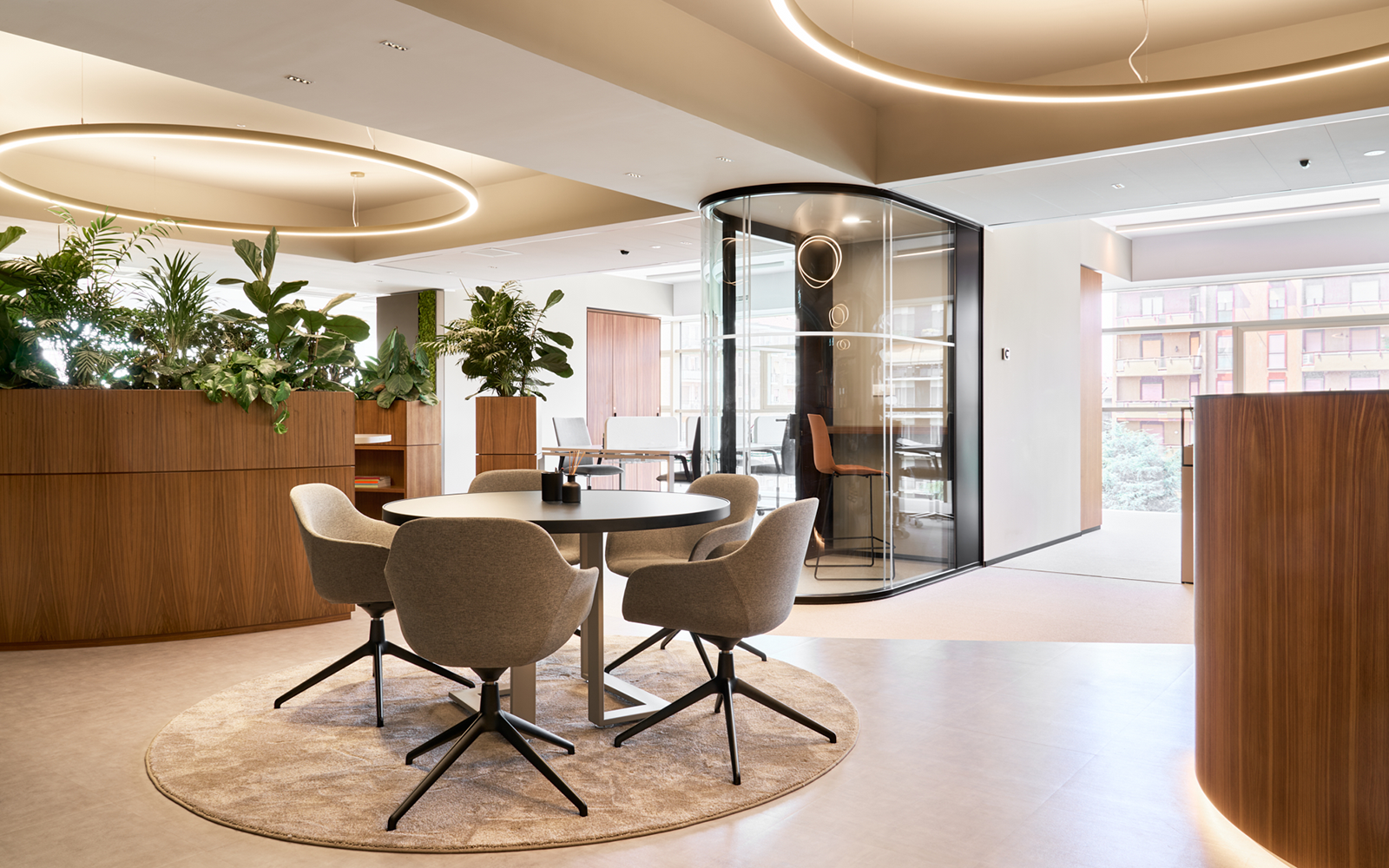 The final result is an office where innovation, sustainability, and attention to people coexist — transforming the work experience into something more than a simple physical space: a place that inspires and welcomes.