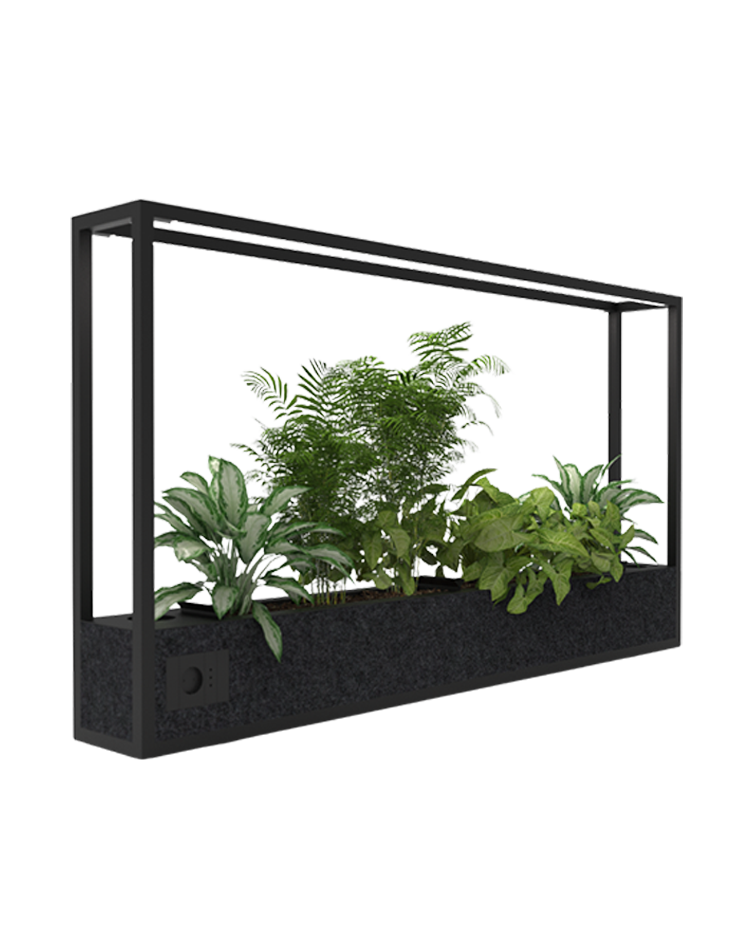 OXY TABLE is a divider that combines task lighting with the benefits of greenery.