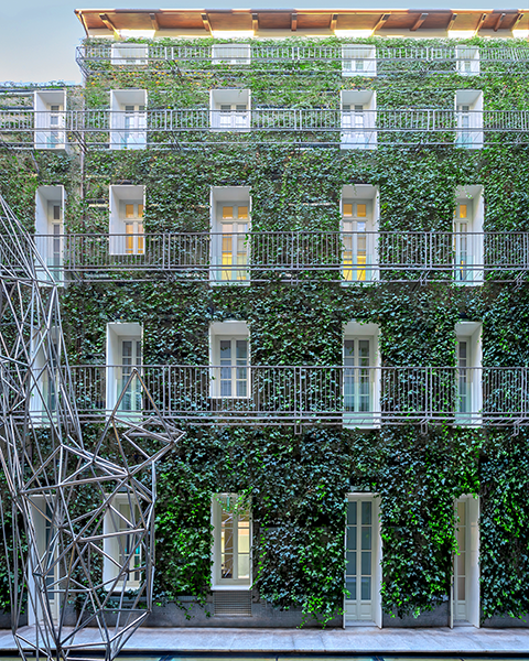 The inner façade was covered with an elegant and scenic climbing vertical garden.