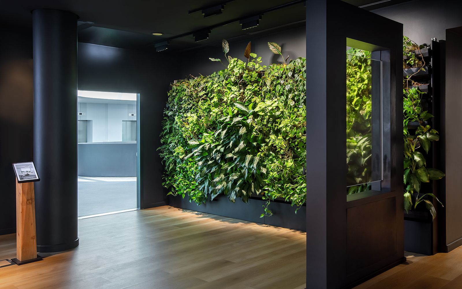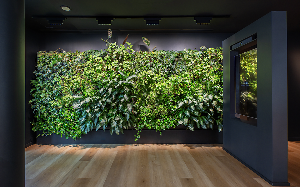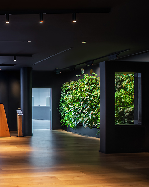 The result is a contemporary space where greenery and design coexist in perfect balance.