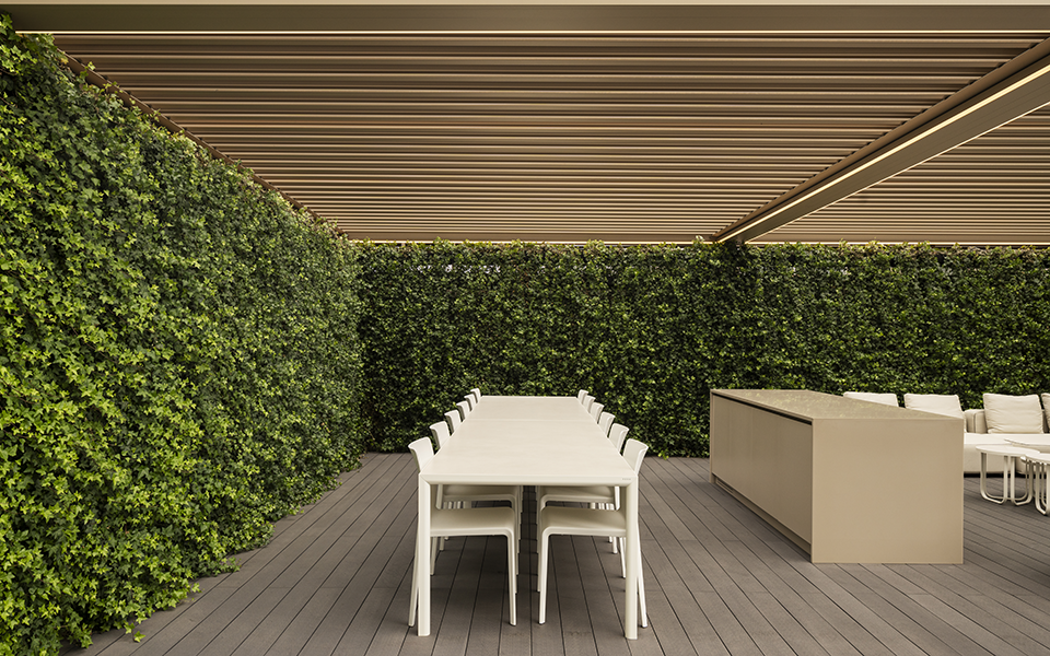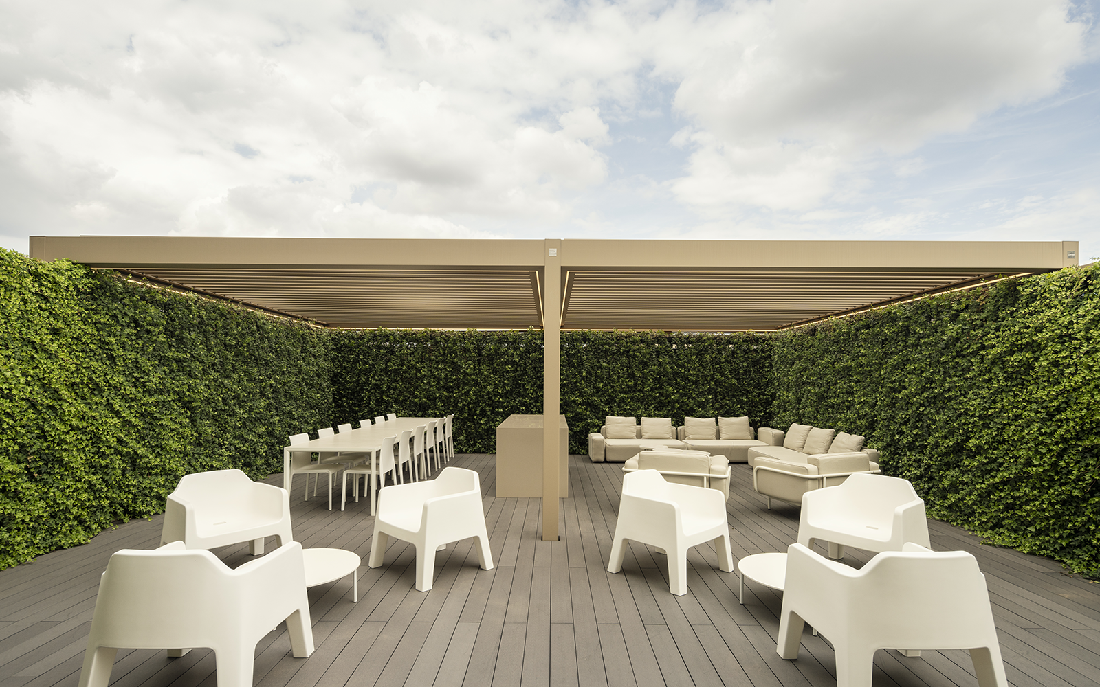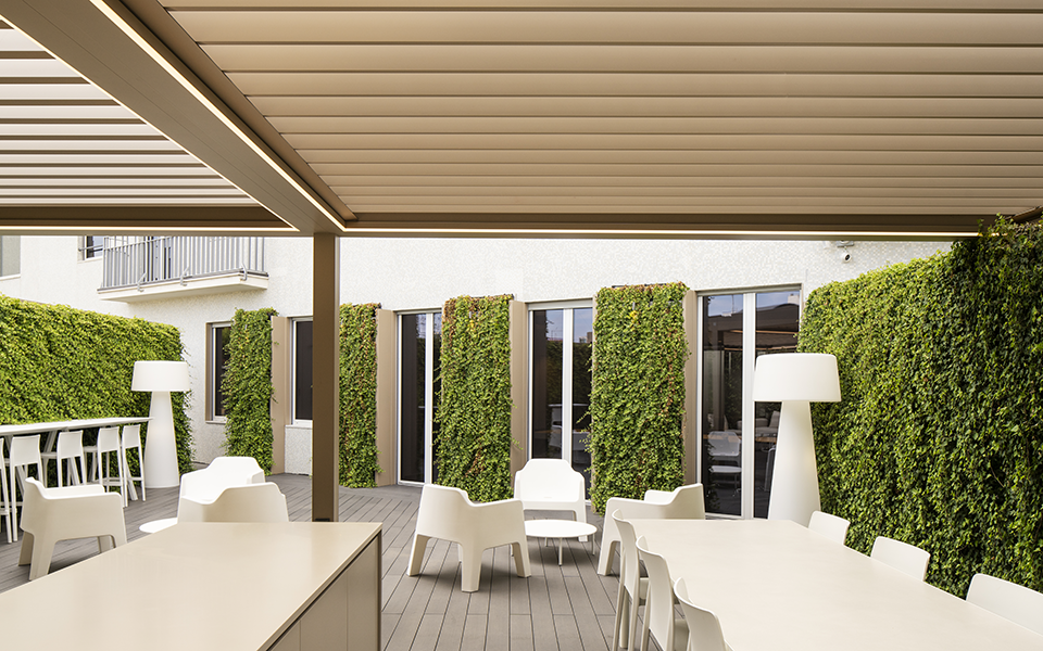 The intervention included the creation of outdoor green walls designed to ensure privacy and comfort on the terrace.
