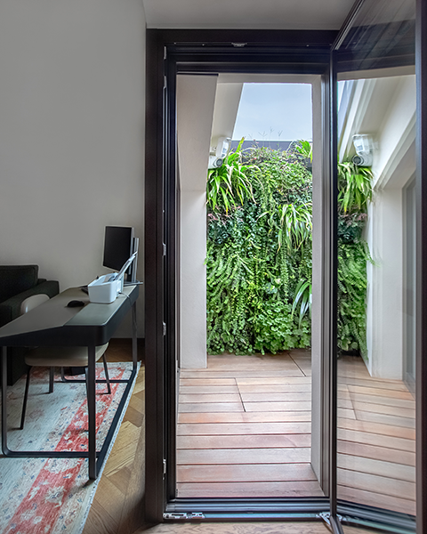 In this project, we integrated vertical green walls that transform the outdoor areas into true suspended gardens.