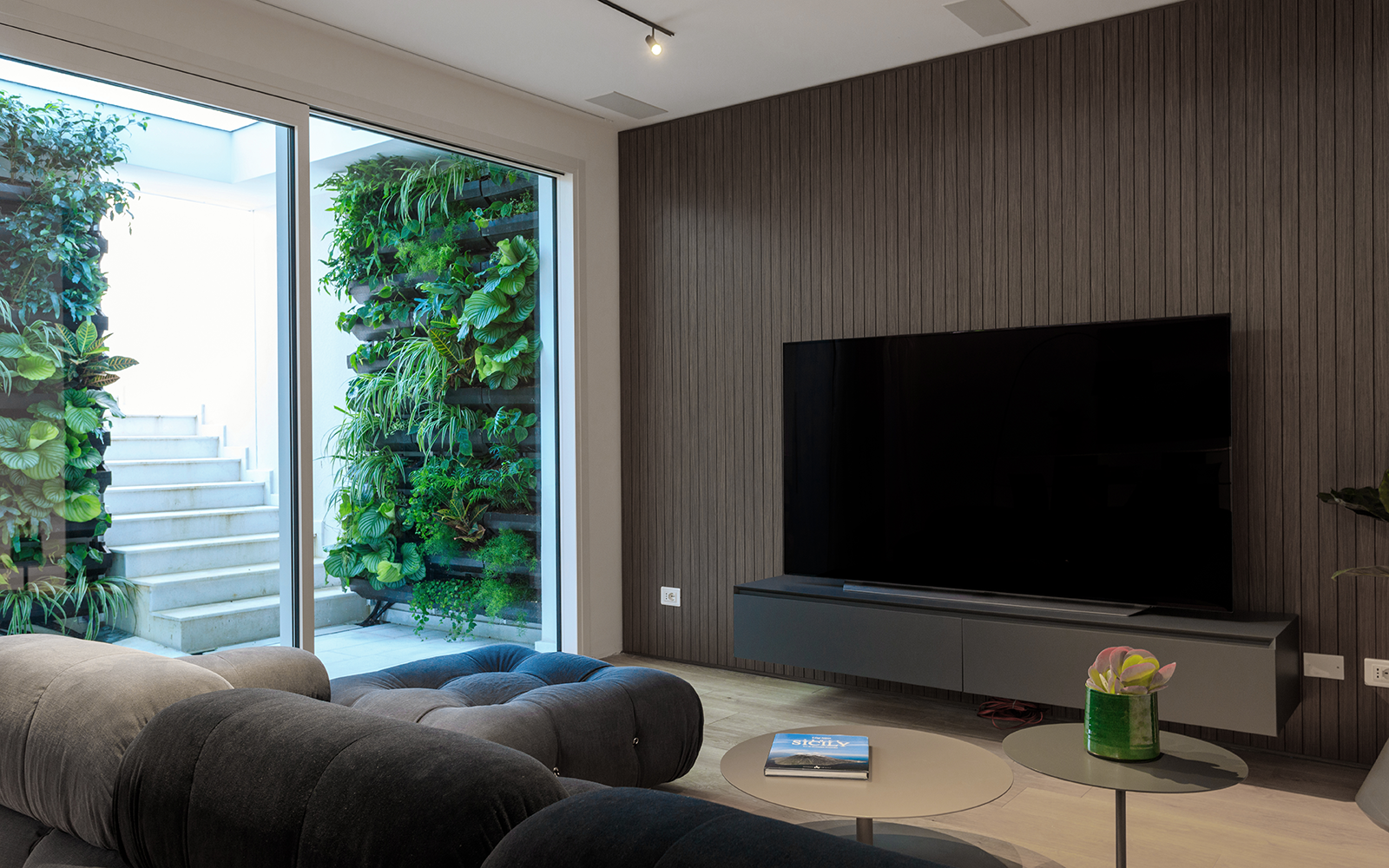 In the renovation of this villa in Mondello, VERTICALgarden walls were introduced to create continuity between indoor and outdoor spaces and to bring nature into the living areas.
