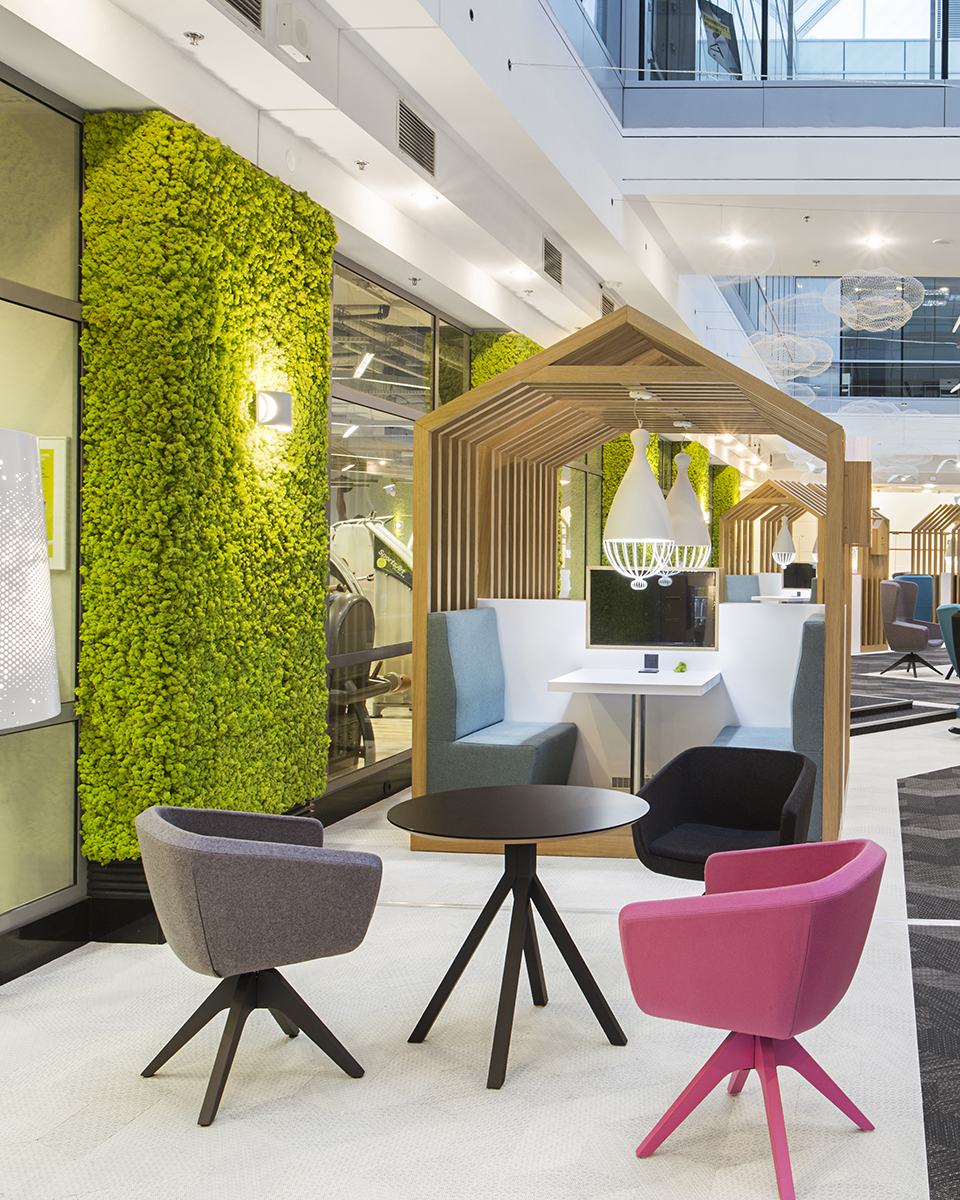 For the Wola Park shopping center in Warsaw, Poland, we collaborated with Studio Marro, providing over 180 m² of MOSSwall® panels in the color Wasabi55.