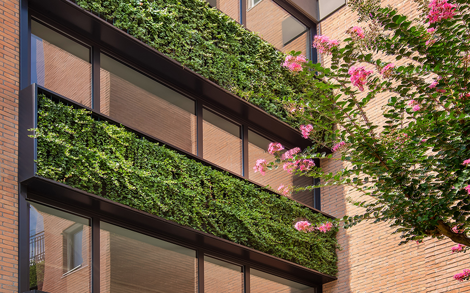 Abbiamo scelto un giardino verticale arrampicante, capace di integrare natura e design in modo armonioso.